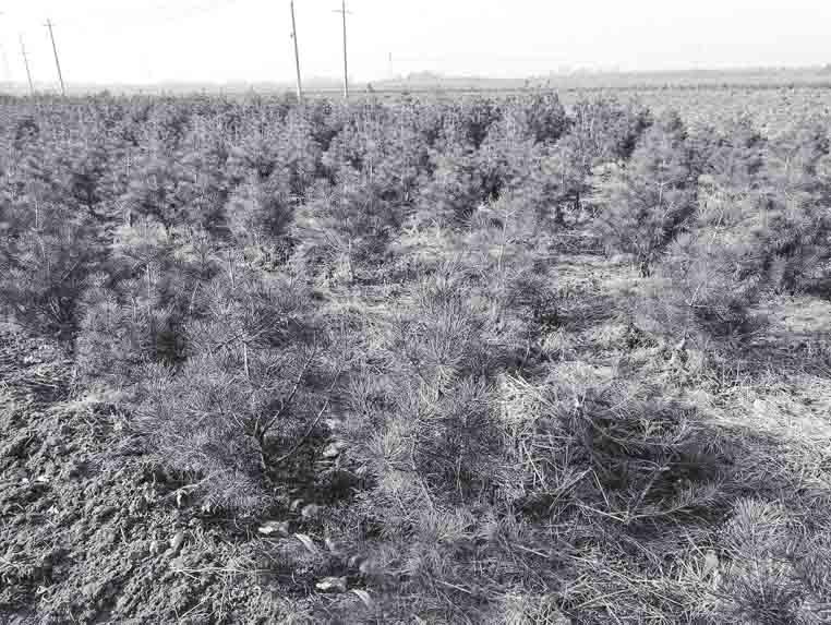 苗圃区划分为拱棚集中播种育苗区、大田移植育苗区。在营养钵苗移植前(1~2年),大田移植育苗区可种植花生等经济作物增加收益。