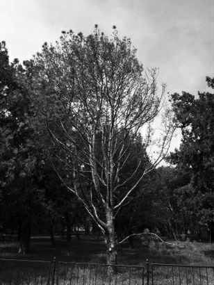 2018年5月初发现此区域有3 株白皮松出现长势严重衰弱,表现为针叶稀疏且短、枯黄落叶,其中径级38cm 以上的1 株,径级26-36cm 的1株,径级14-24cm 的1 株。 出现枯黄落叶的白皮松整树或者部分侧枝迈向干枯、死亡危机,由远处观望树冠顶端赤枯。(见图1-2)长势衰弱的白皮松呈现零星分布,结合田间观察并未发现重大病害特征,枝干上有蛀干害虫危害的虫道。 用尺子量取每束针叶的长度,每株树取10 次重复,取其平均值,针叶长3cm。