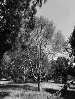 此区域的白皮松生长状况良好,干皮斑驳美观,针叶短粗亮丽,优美的树形和冬季保持翠绿的特点,很好的发挥了观赏价值,将宏伟的祭坛建筑衬托的更加严肃庄重,使建筑融于这旷世外的自然中,营造出天高地广氛围。