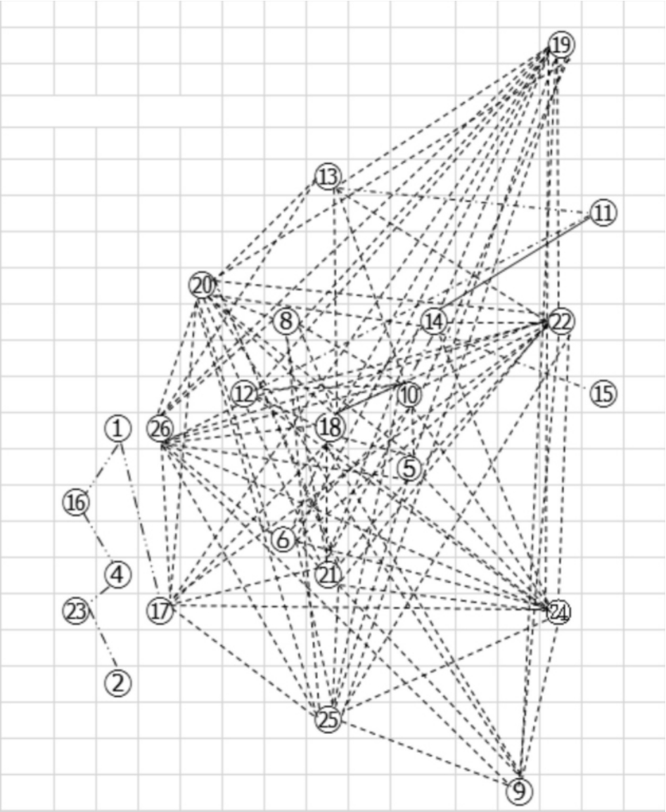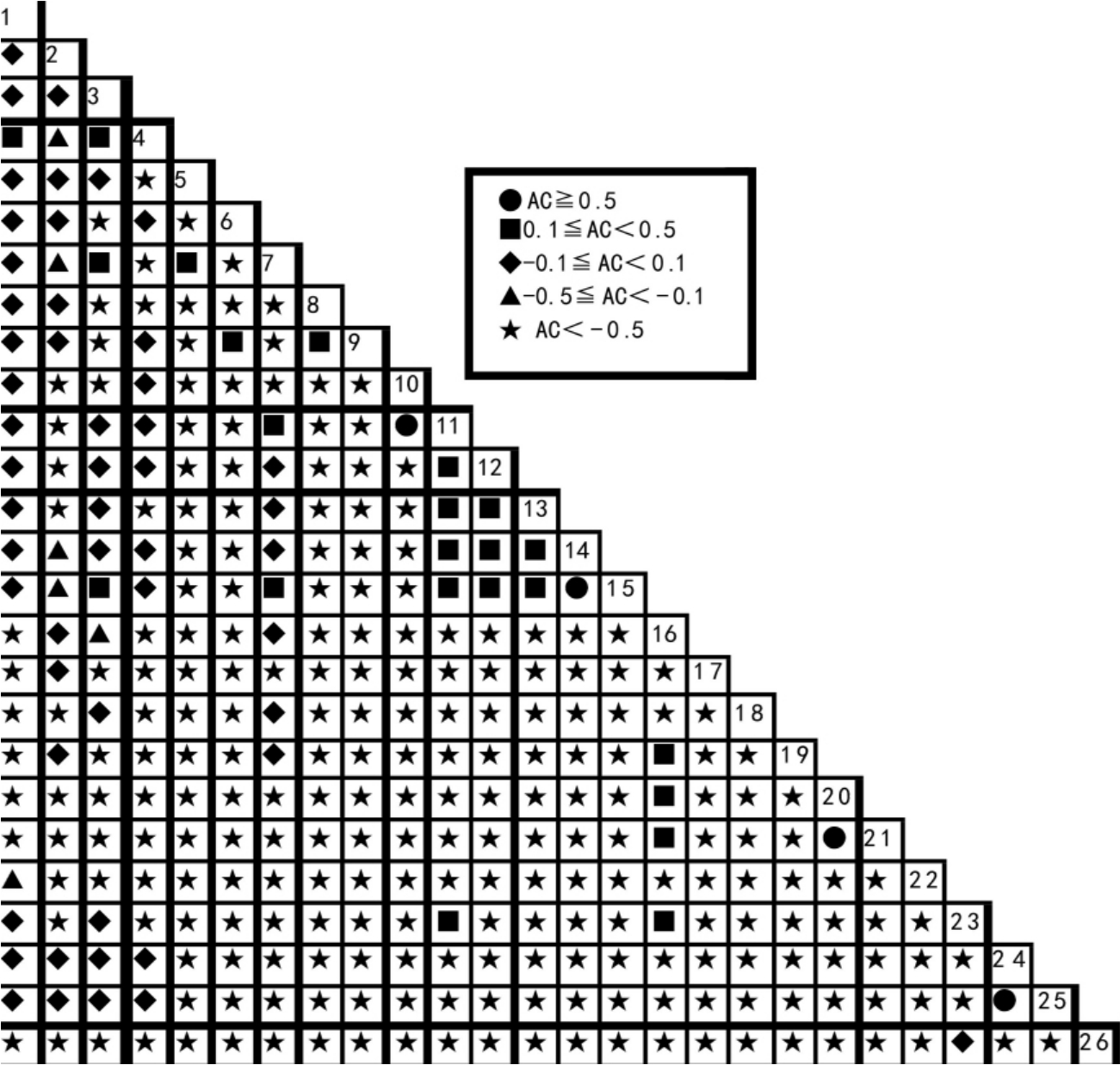 Fig.2 Half-matrix diagram of AC of interspecific connection among the 26main plants