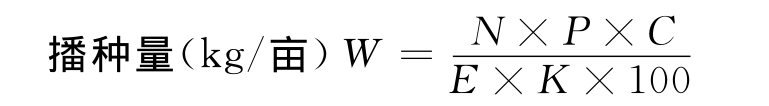 依据计划产苗量、种子净度、千粒重、发芽率确定单位面积播种量。计算公式如下: