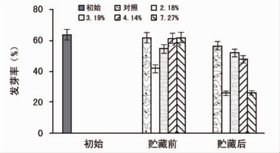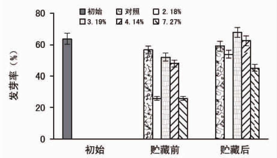 图1 贮藏对不同含水量种子发芽率的影响