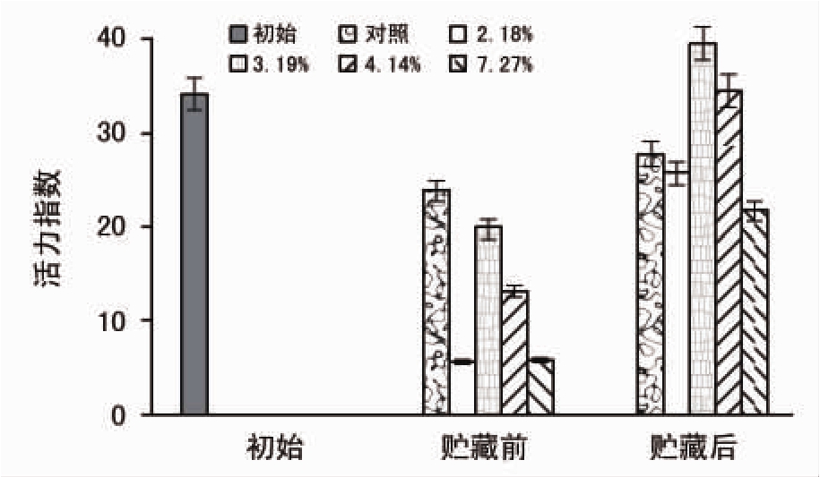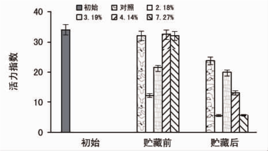 图3 贮藏对不同含水量种子活力指数的影响