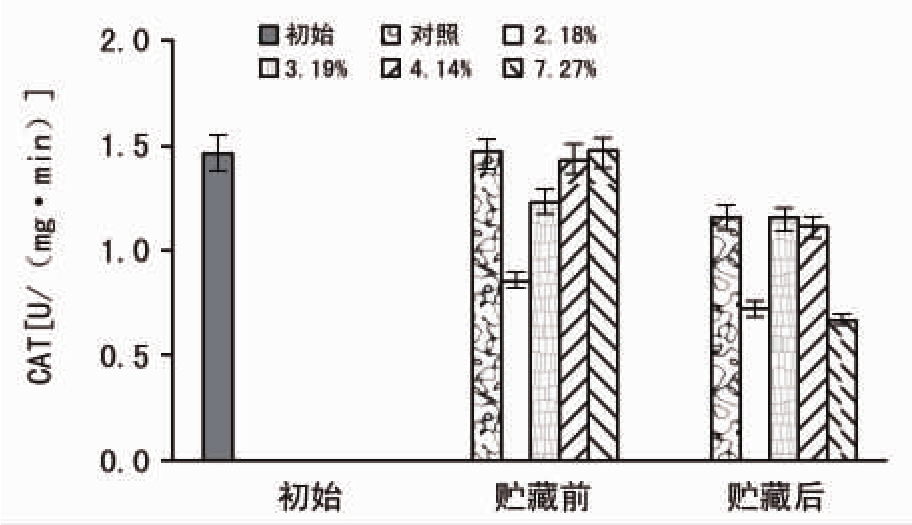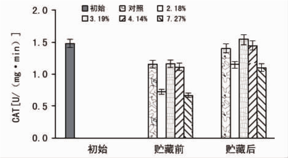 图6 贮藏对不同含水量种子CAT活性的影响