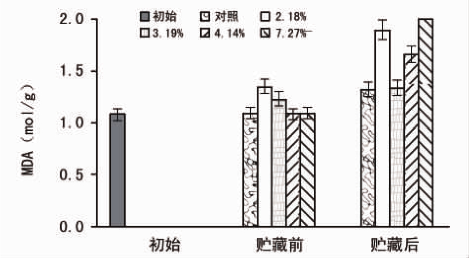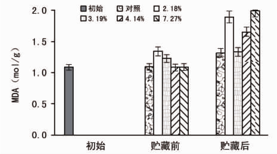 对贮藏前后的各种子进行丙二醛(MDA)含量的测定,结果如图7所示。