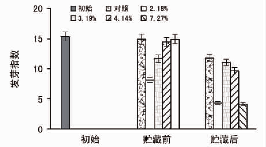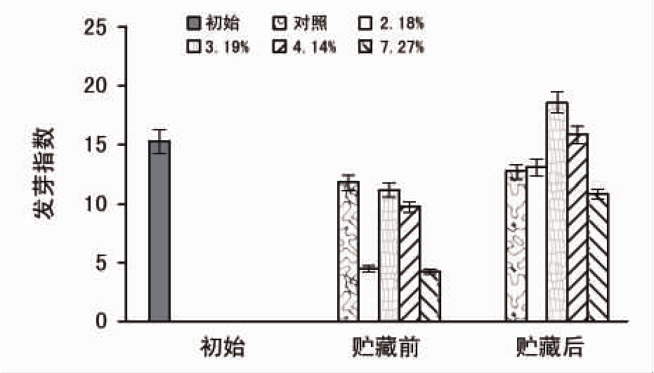 脱水处理后的各含水量种子置于室温下进行贮藏,对照为置于0~5℃冷库中进行贮藏的安全含水量种子(7.27%)。