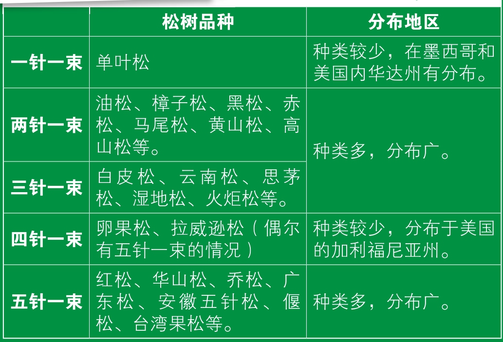 以我们常见的松树为例。如果你认真观察过就会发现,油松的松针是两针一束,白皮松的是三针一束,而华山松则是五针一束。