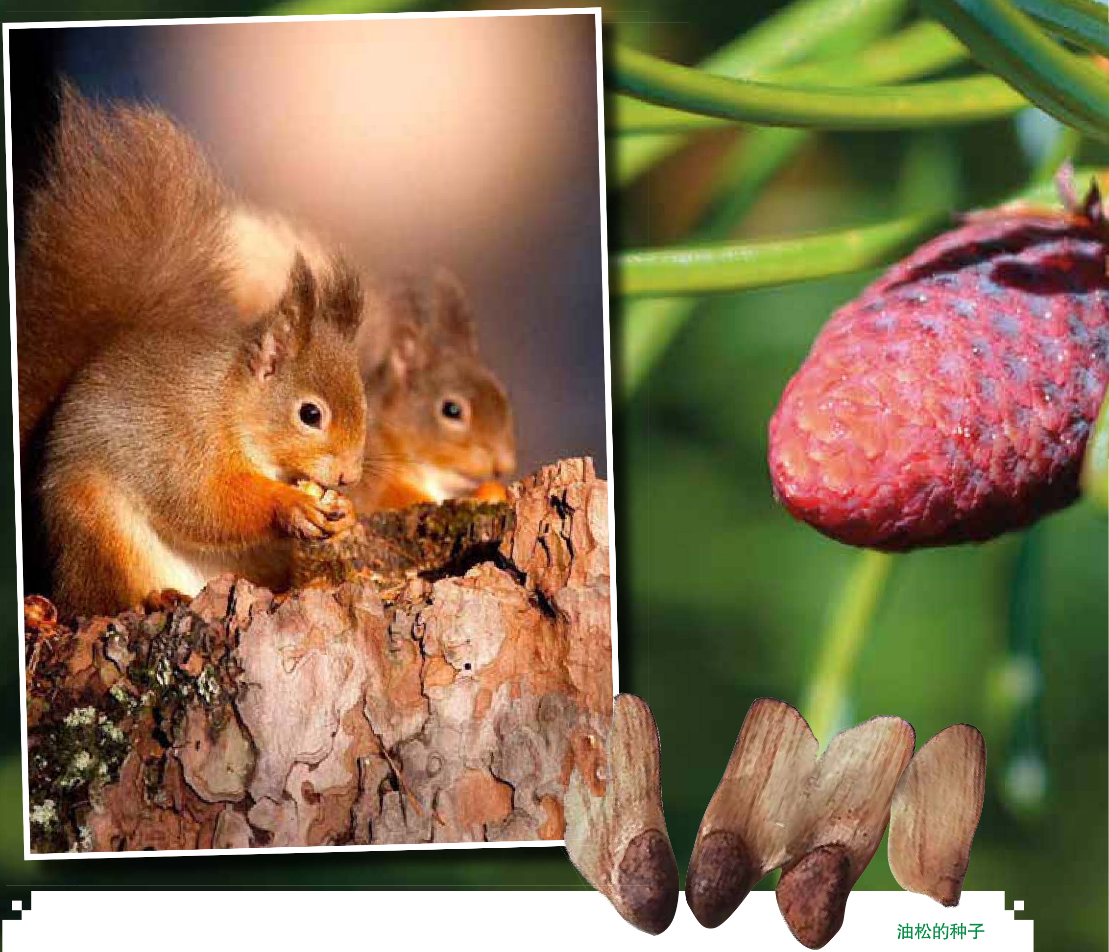 当然,专心的野外觅食者也是种子最好的传播者。比如松鼠,它们可以用自己的全部时间来采摘雌球果,并完成散播种子的任务。