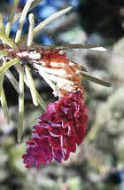 所有的松树都是雌雄同株的。雄球花通常位于树冠的中下部,雌球花通常位于树冠的中上部,但这些不显眼的球花常常会被人忽略。