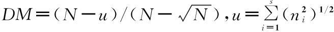 式中:S为群落中的物种总数,N为观察到的个体总数。