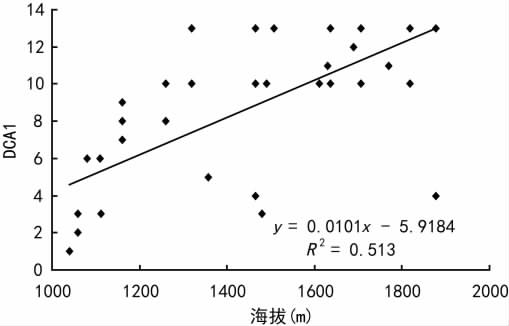 Fig.3 Correlation analyses between the first DCA axis and elevation