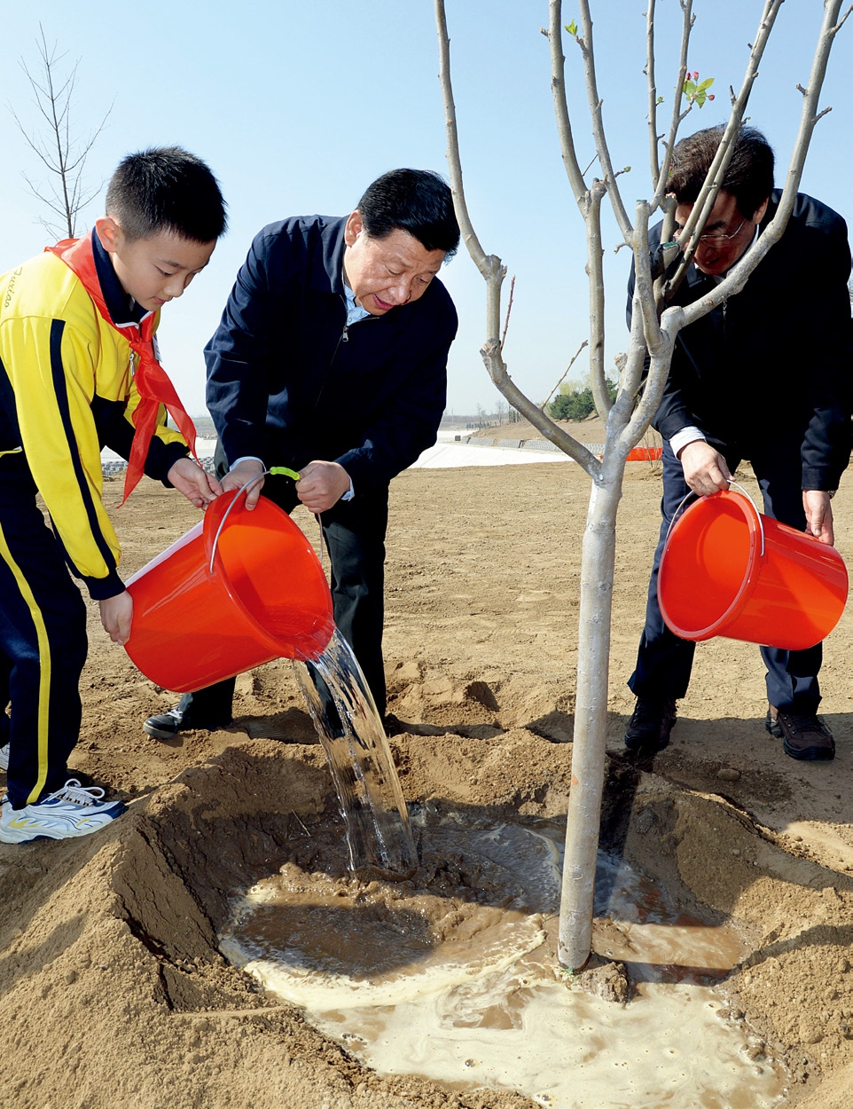 2014年4月4日,国家主席习近平来到北京市海淀区南水北调团城湖调节池参加植树活动。