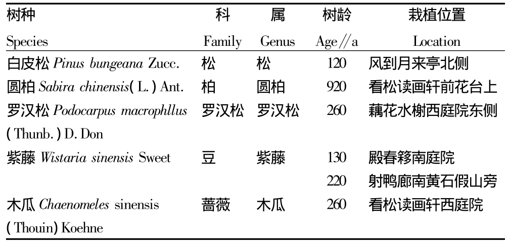 表1 网师园古树树种、科属、树龄及栽植位置