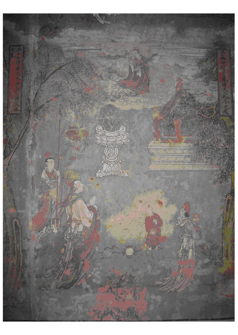 图1 太原多福寺明代壁画东壁第十一幅《天人献花》